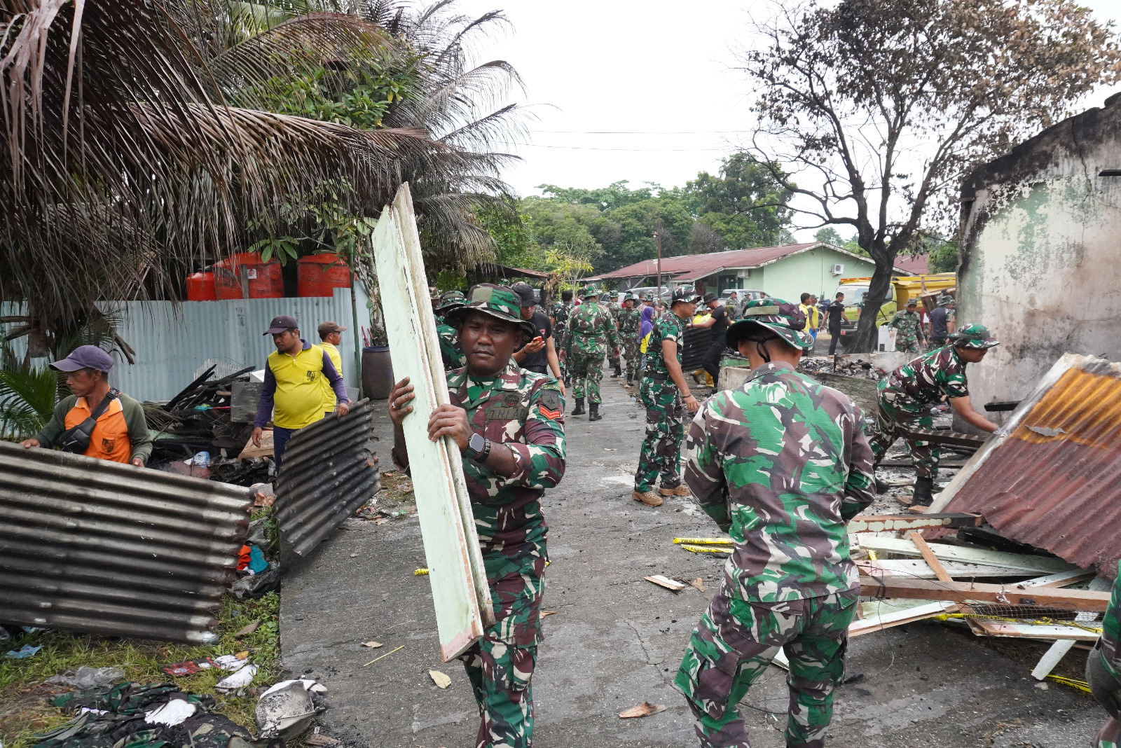 Kegiatan ini melibatkan personel Korem 031/Wira Bima, Kodim 0301/Pekanbaru, Brimob, serta Dinas Lingkungan Hidup dan Kebersihan (DLHK) Kota Pekanbaru. Fokus utama gotong royong meliputi pembersihan puing-puing sisa kebakaran, penataan lingkungan asrama, serta langkah awal pembangunan dan renovasi fasilitas yang rusak.